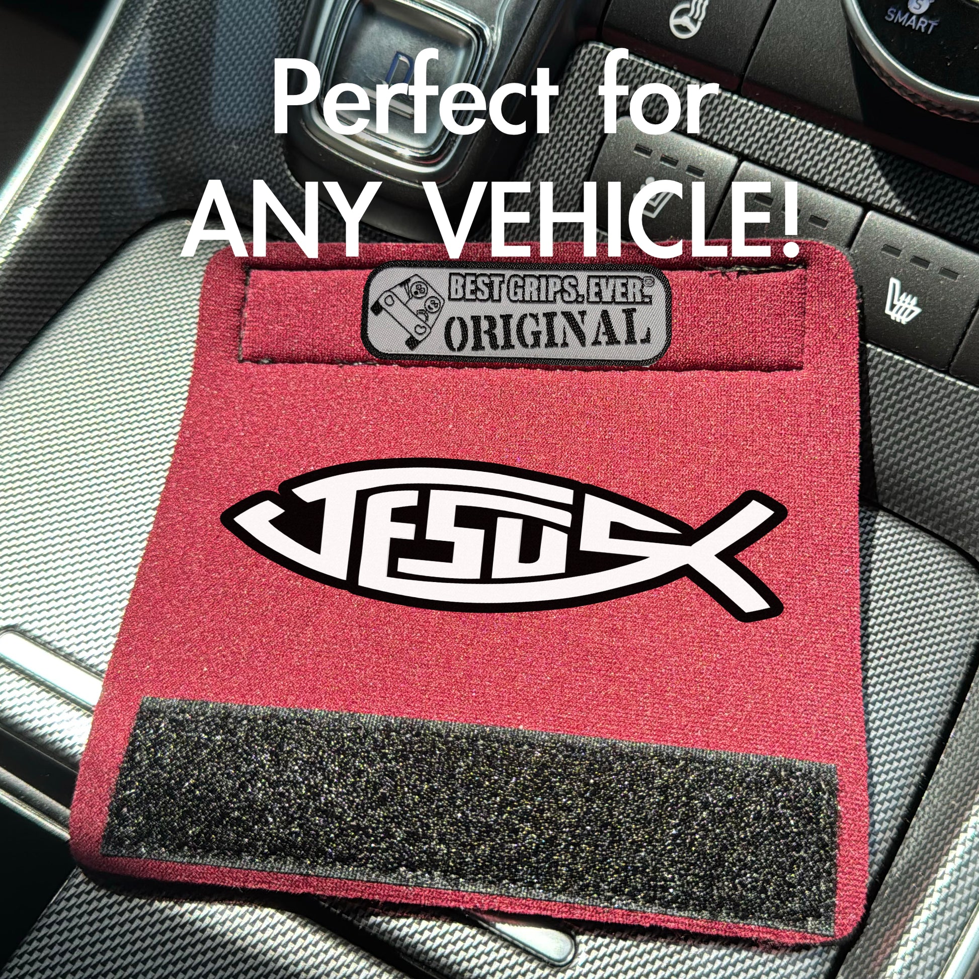 Made from PRO-GRADE wetsuit material, our grips are BEYOND BELIEF durable—built for family trips, everyday drives, and moments when faith leads the way.