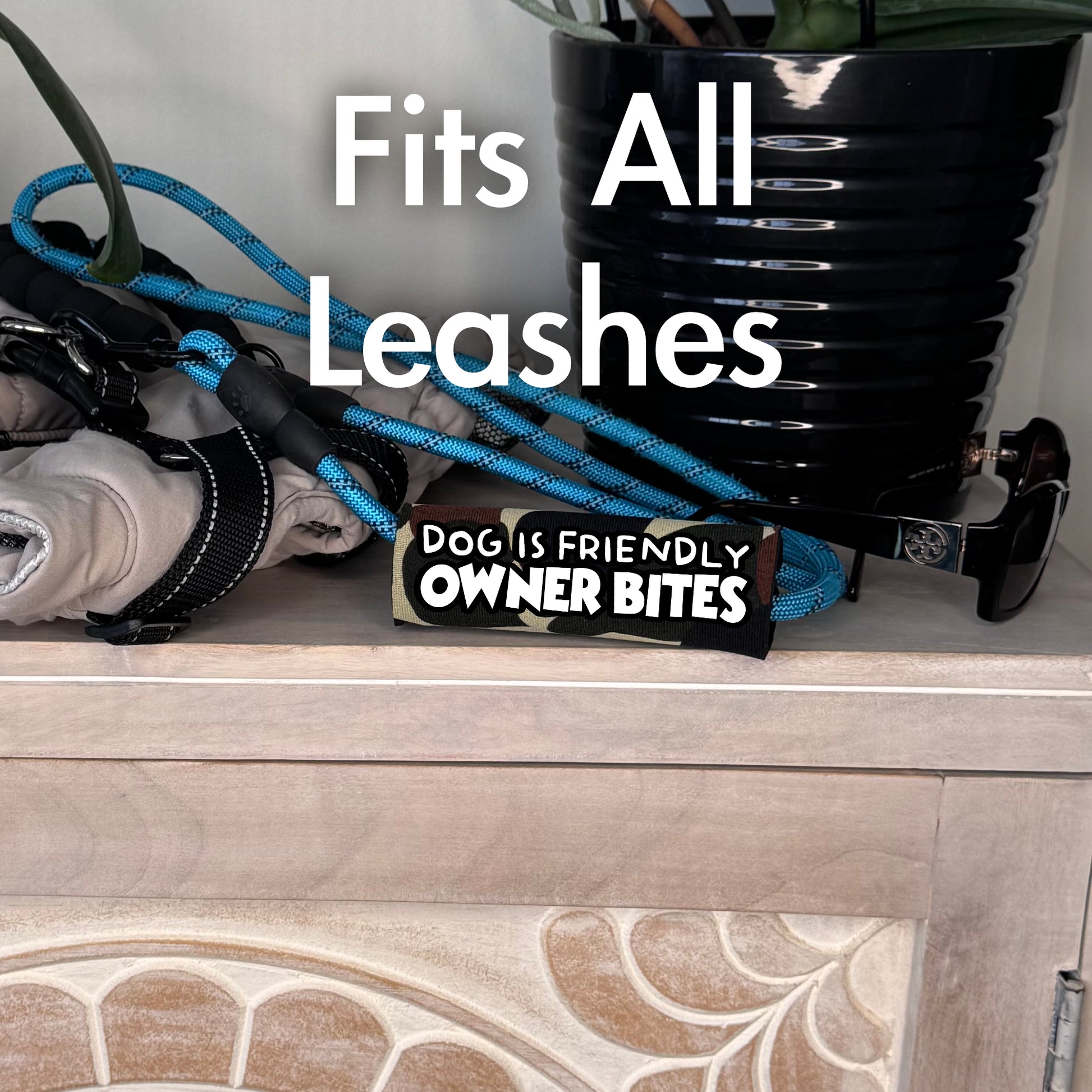 Looking to keep strangers laughing (and maybe a little cautious)? The DOG IS FRIENDLY, OWNER BITES leash grip delivers the perfect blend of personality, wit, and warning – all wrapped around your leash.